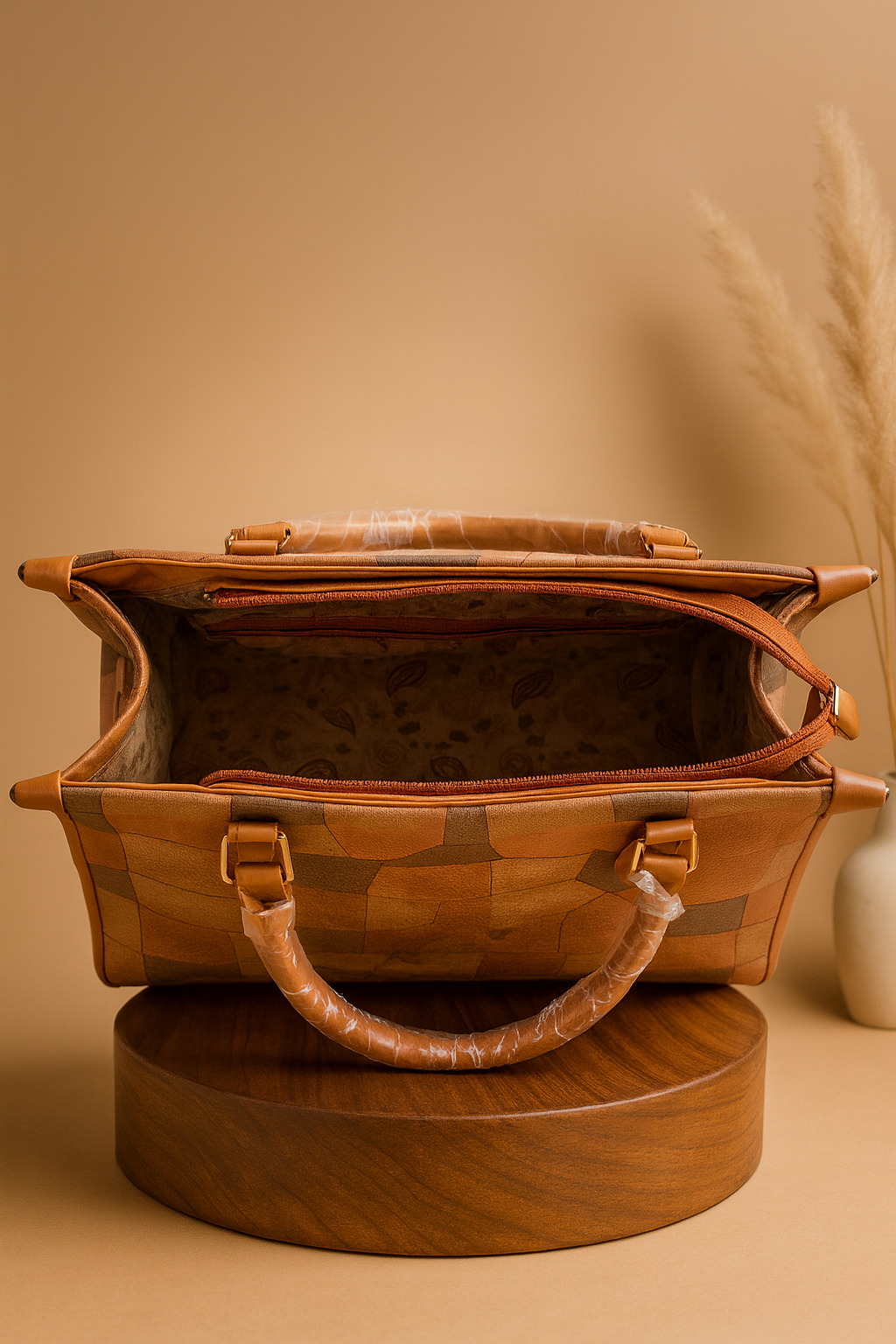 Patchwork GG Luxury Tote Bag – Multi-Tone Brown with Gold Detailing